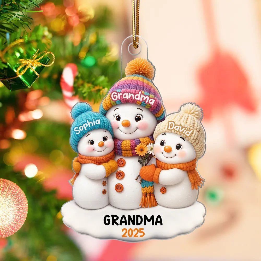 Snowman Acrylic Ornament with Cozy Family Scene for Grandma – Perfect Christmas Gift