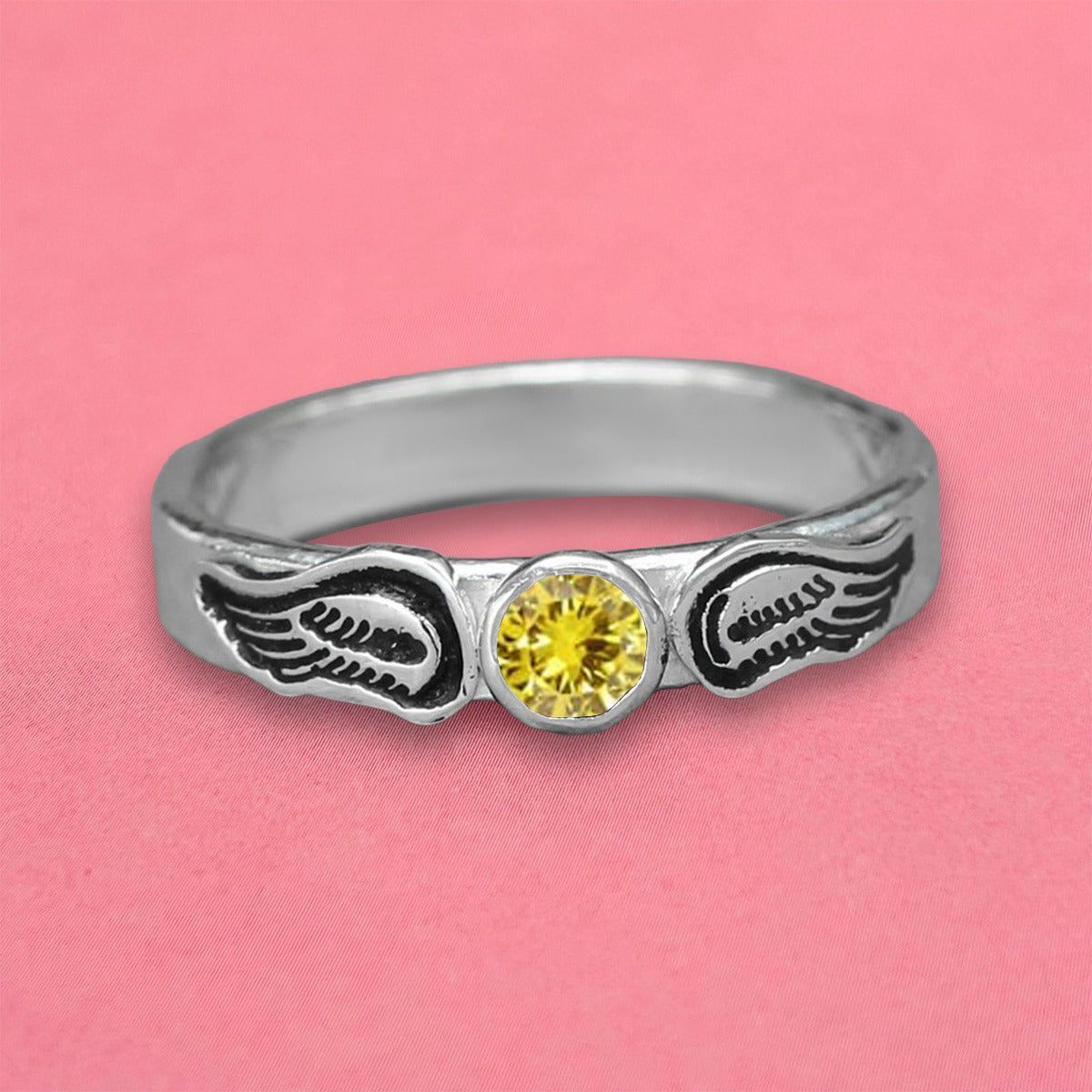 For Memorial - Personalized Name & Birthstone Angel Wing Ring