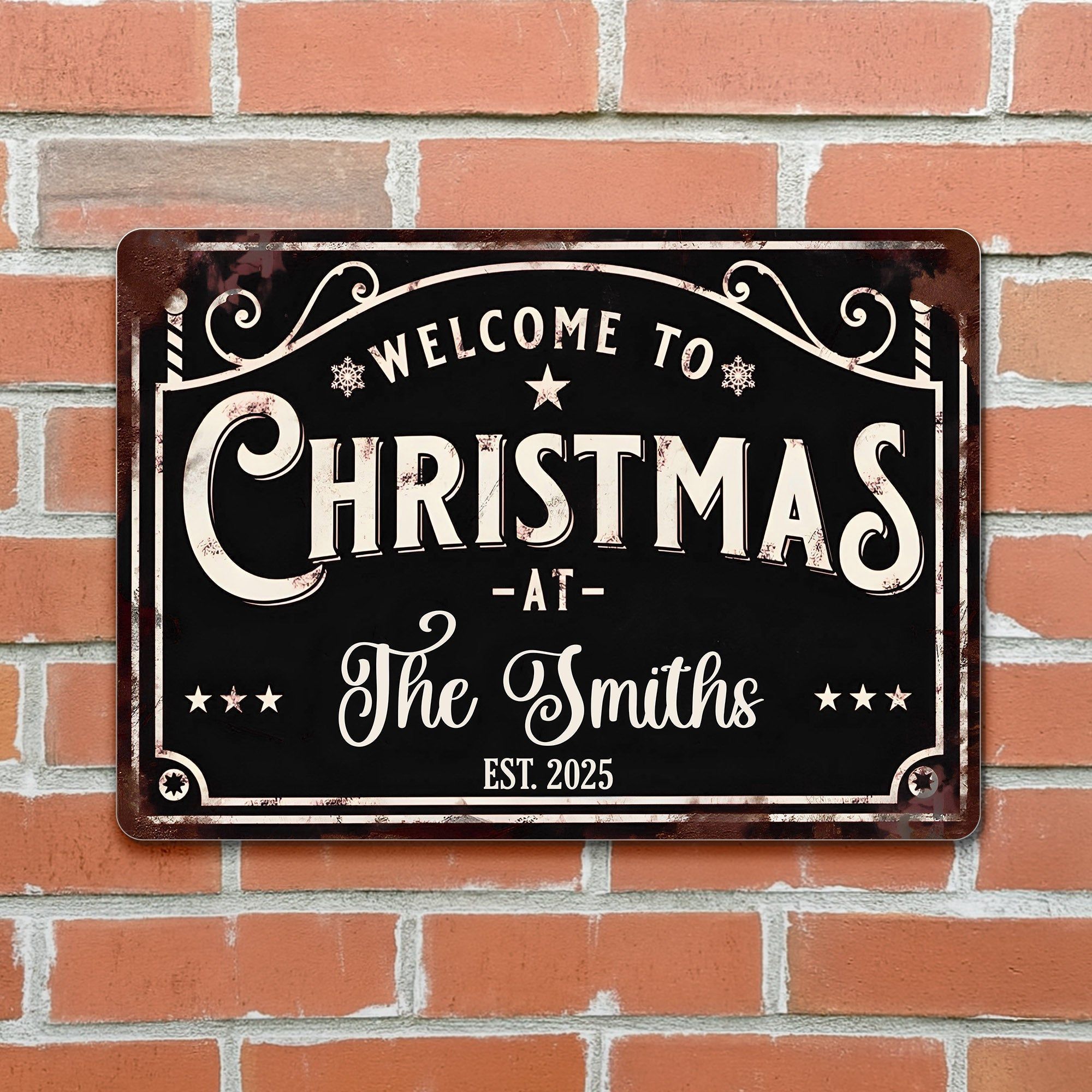 Personalized Vintage American Christmas Metal Sign – Custom Family Name & Year | Retro Holiday Decor & Heirloom Gift