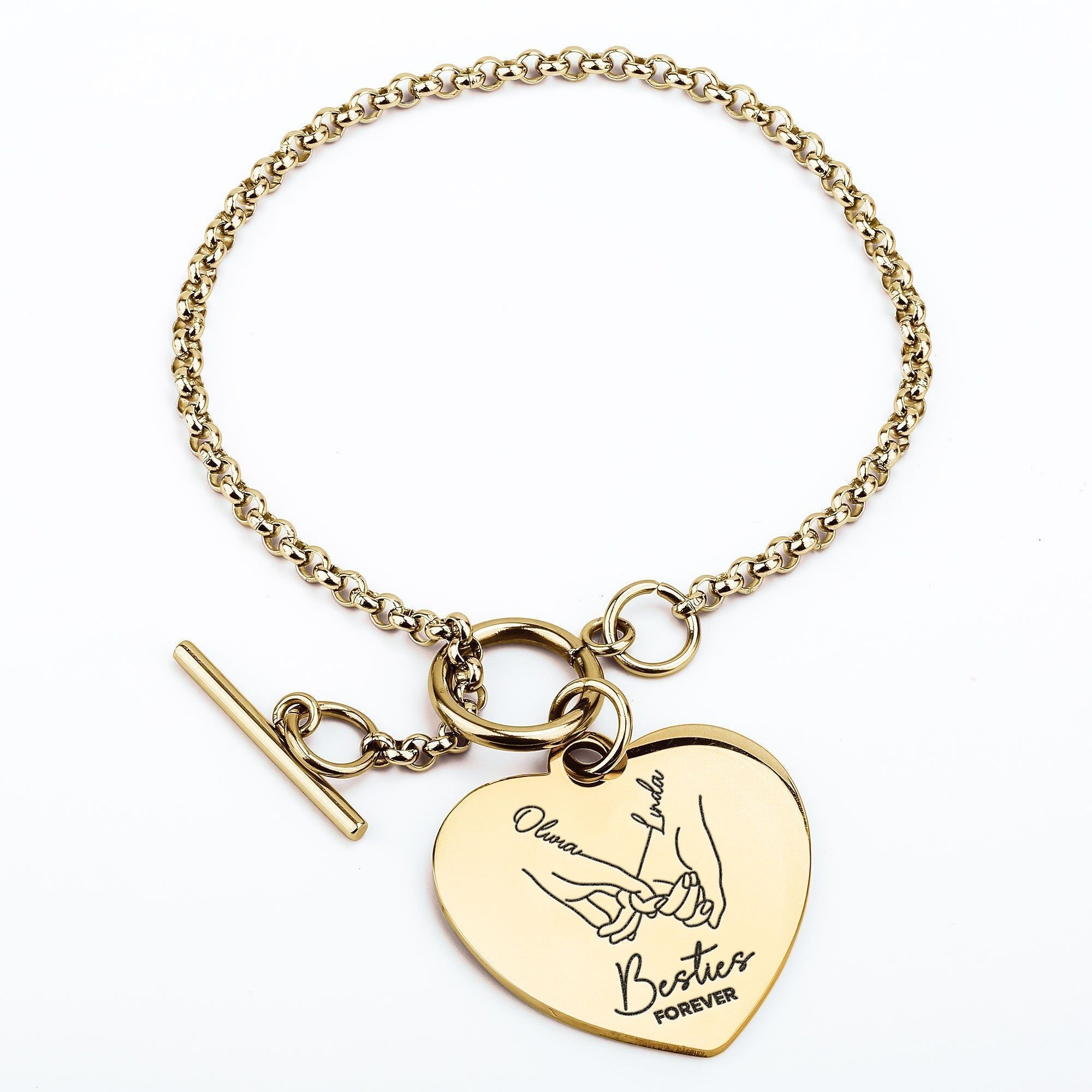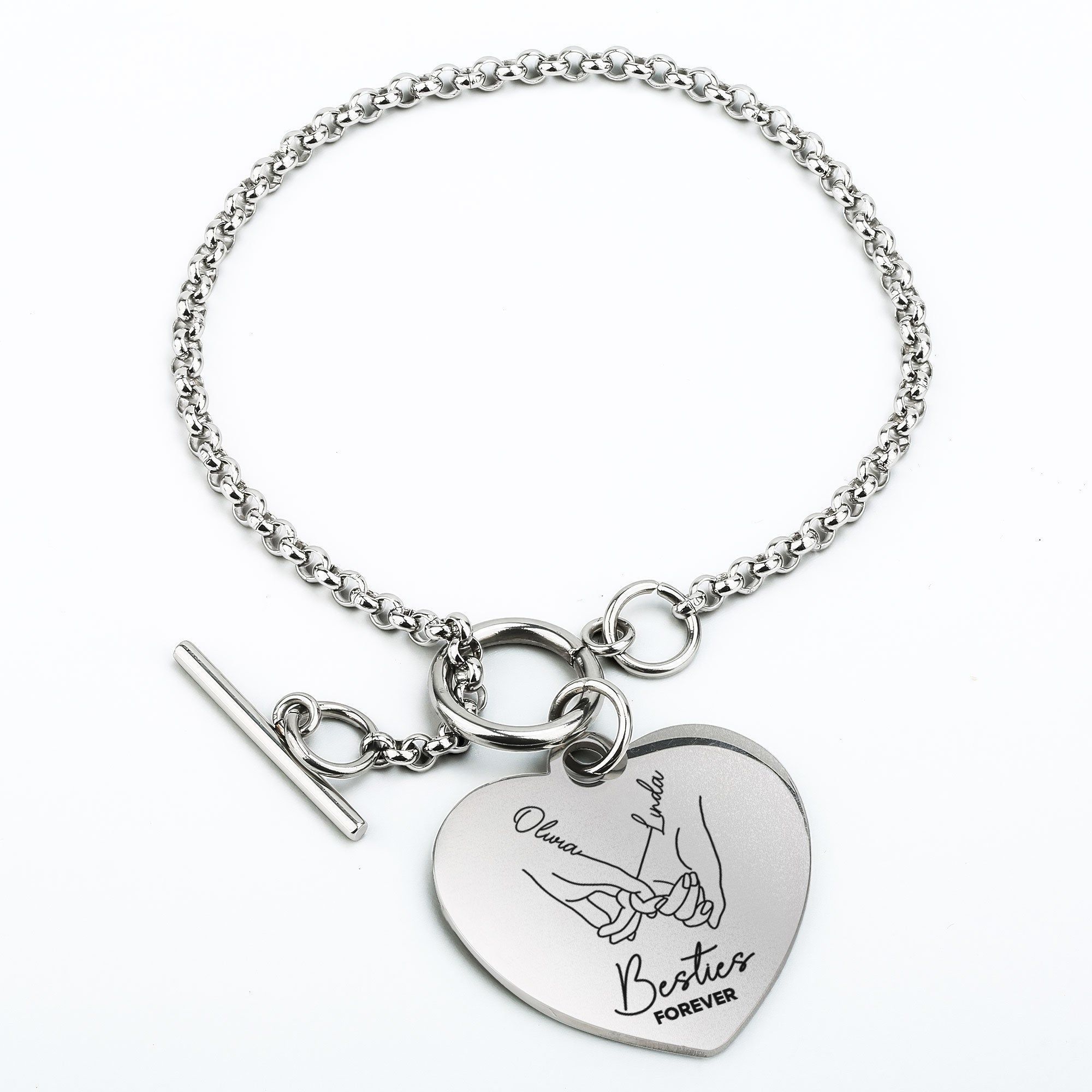Personalised Besties Forever Heart Bracelet Valentine Gift Custom Jewellery