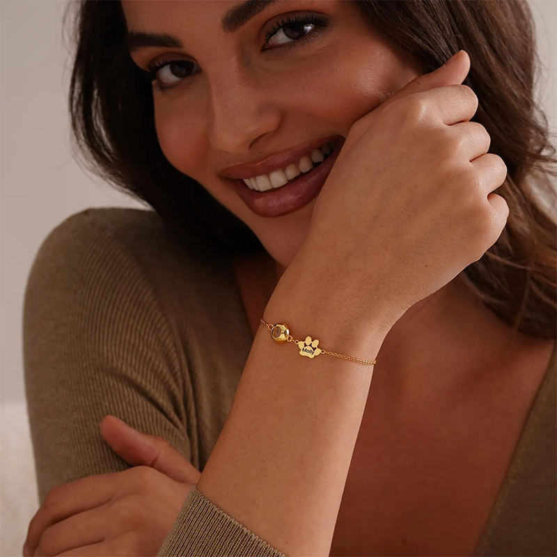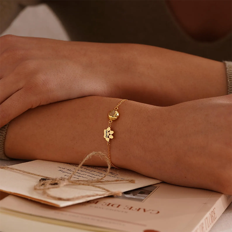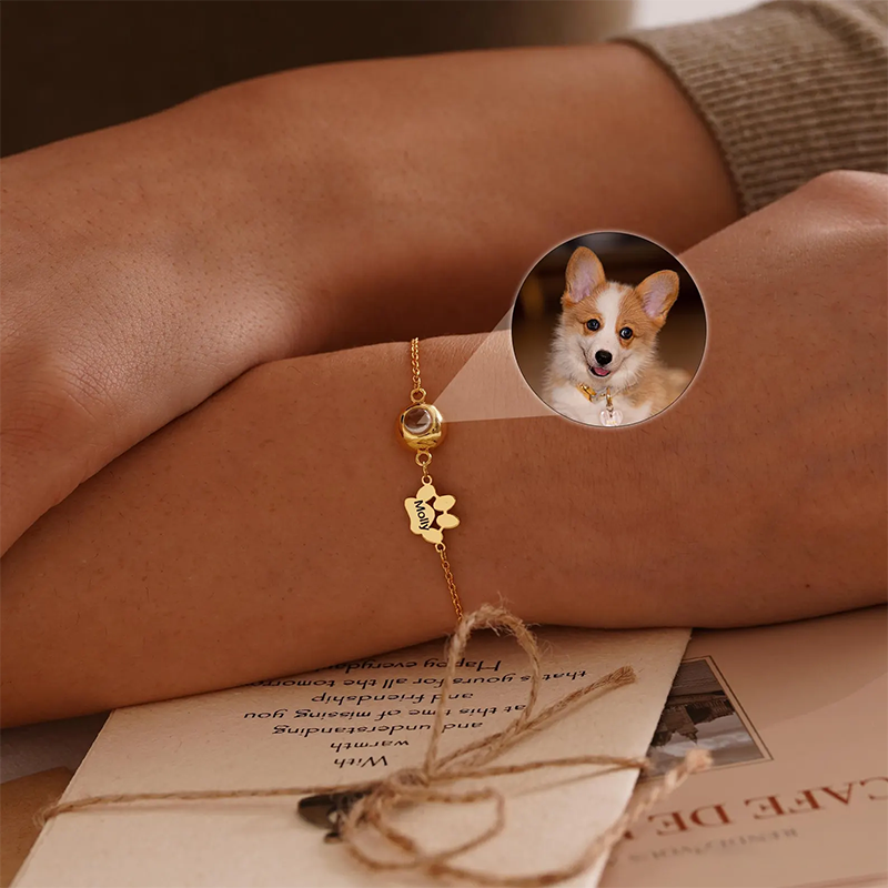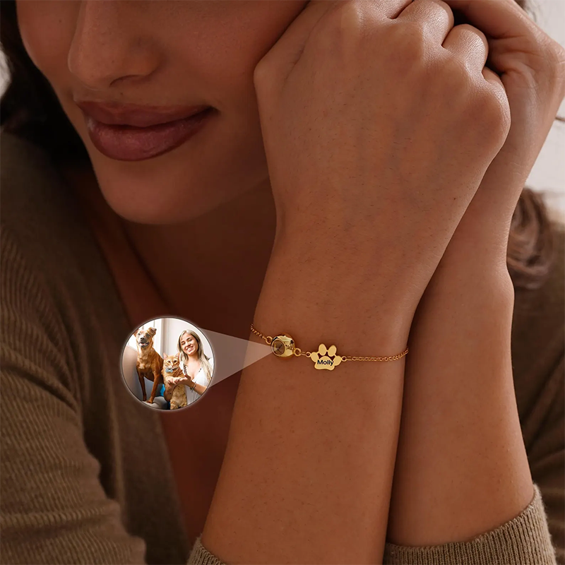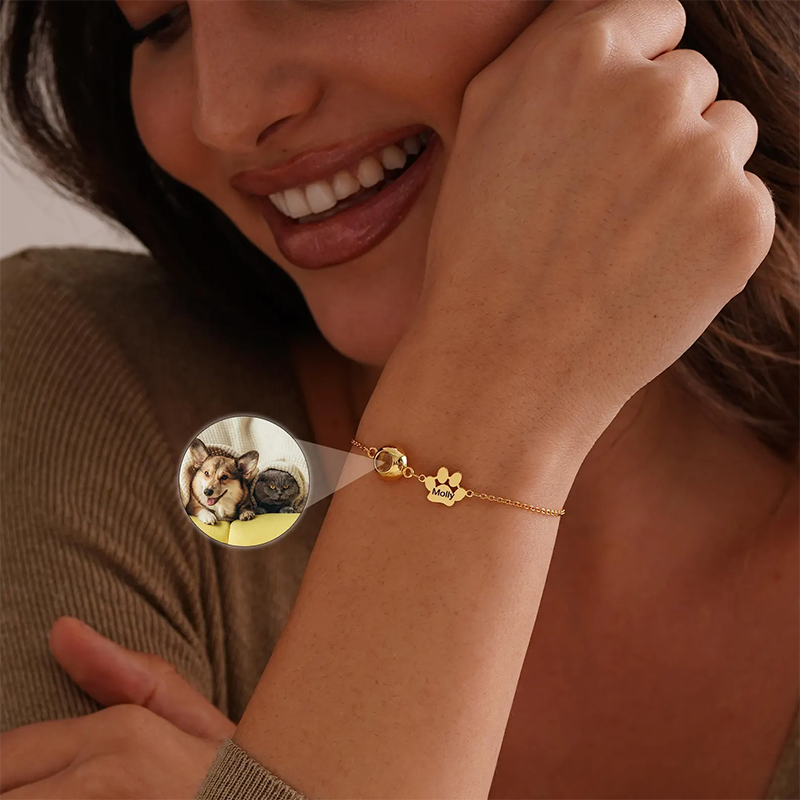 Pet Name Bracelet with Photo, Dog Cat Picture Projection Bracelet for Mom, Personalized Pet Projection Bracelet for Women, Pet Lover Gift